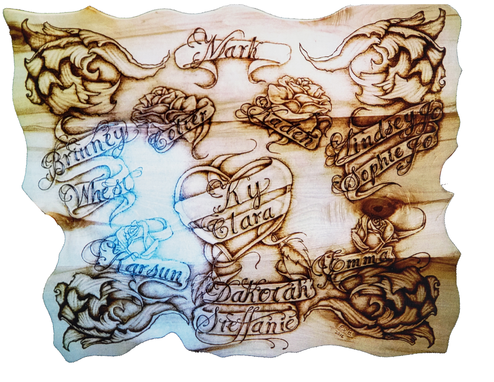 Our founder and local artist Eric Brown, has been perfecting the craft of woodburning for over 20 years. What started as a passion for working with wood has blossomed into a small business with a commitment to preserving and innovating within the woodworking tradition. Every product we create reflects our love for the process and dedication to customer satisfaction.